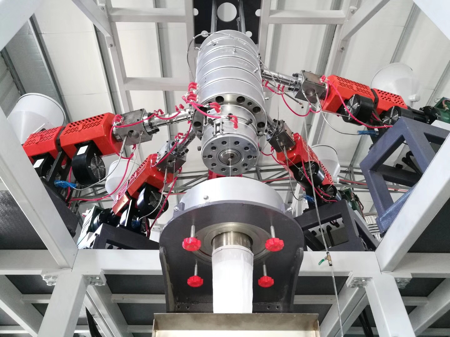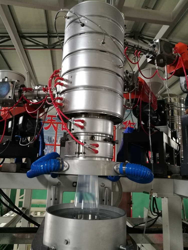 *冷卻水環(huán)預冷及定徑套自溢水冷,膜泡穩(wěn)定,厚薄分布均勻。
