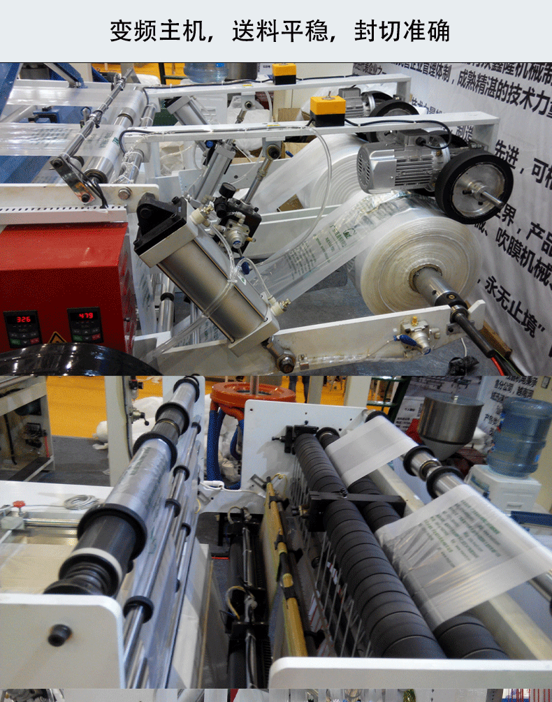 *主機(jī)采用變頻器調(diào)速,自動(dòng)送料,配自動(dòng)糾偏裝置,使制袋平穩(wěn),封切準(zhǔn)確。