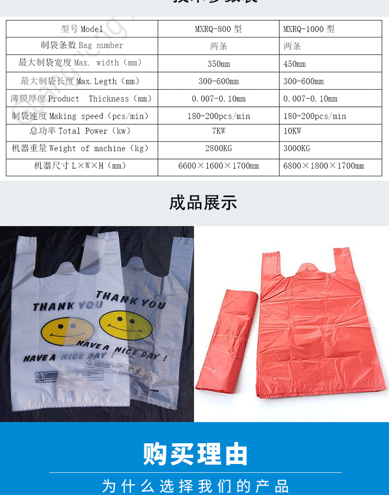 *該機(jī)適應(yīng)于制作HDPE、LDPE、PP等筒膜的背心袋。